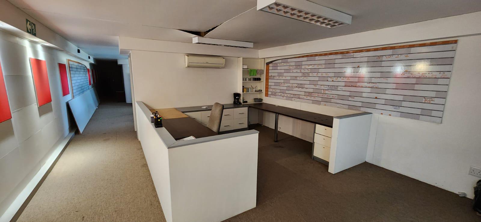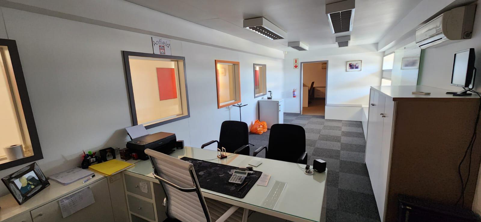 Warehouse To Let in prime location Kraaifontein. This industrial property to rent consists of the following features: 1 x reception area, 1 x boardroom, 1 x kitchen, office ablutions and warehouse ablutions. There are numerous air-conditioned offices built into the roof to maximise space. There are storerooms in the warehouse, there's a spray both and change rooms. The warehouse has a high roller shutter door for loading, double volume roof height in the warehouse.