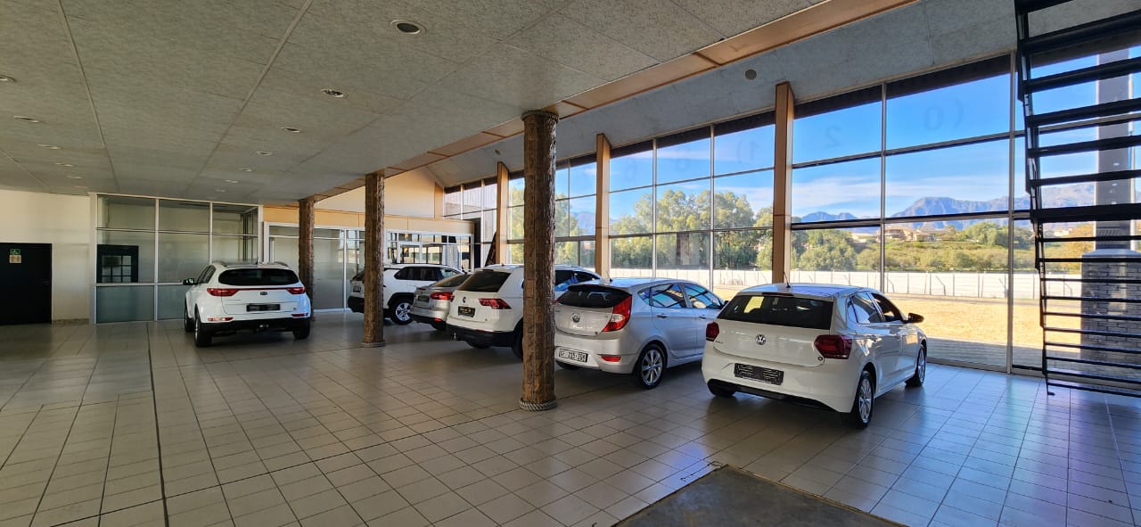 Exceptional showroom space available for rent in Triangle Park, Dal Josaphat, Paarl, offering unparalleled main road exposure to both Hugenot Bypass and Triangle Street. This prominent location ensures maximum visibility for your business. The showroom features two sides with expansive glass and aluminum shopfronts, flooding the space with natural light and providing excellent exposure. The ground floor, approximately 460 sqm, includes three offices and ablution facilities, perfectly suited for operational needs. Upstairs, you'll find multiple offices, a kitchen, two ablution facilities, and restrooms, providing ample space for staff and administrative functions.The showroom's open-plan waiting section offers a welcoming environment for customers. Aluminum doors provide convenient access to both Hugenot Bypass and Triangle Street, enhancing visibility and customer flow. The building is flanked by paved areas on both sides, ideal for additional display or customer parking. This versatile space is perfect for a car showroom, machinery shop, or any business requiring a clean, open, and neat facility with excellent exposure. Don't miss the opportunity to elevate your business presence in this prime location in Paarl.