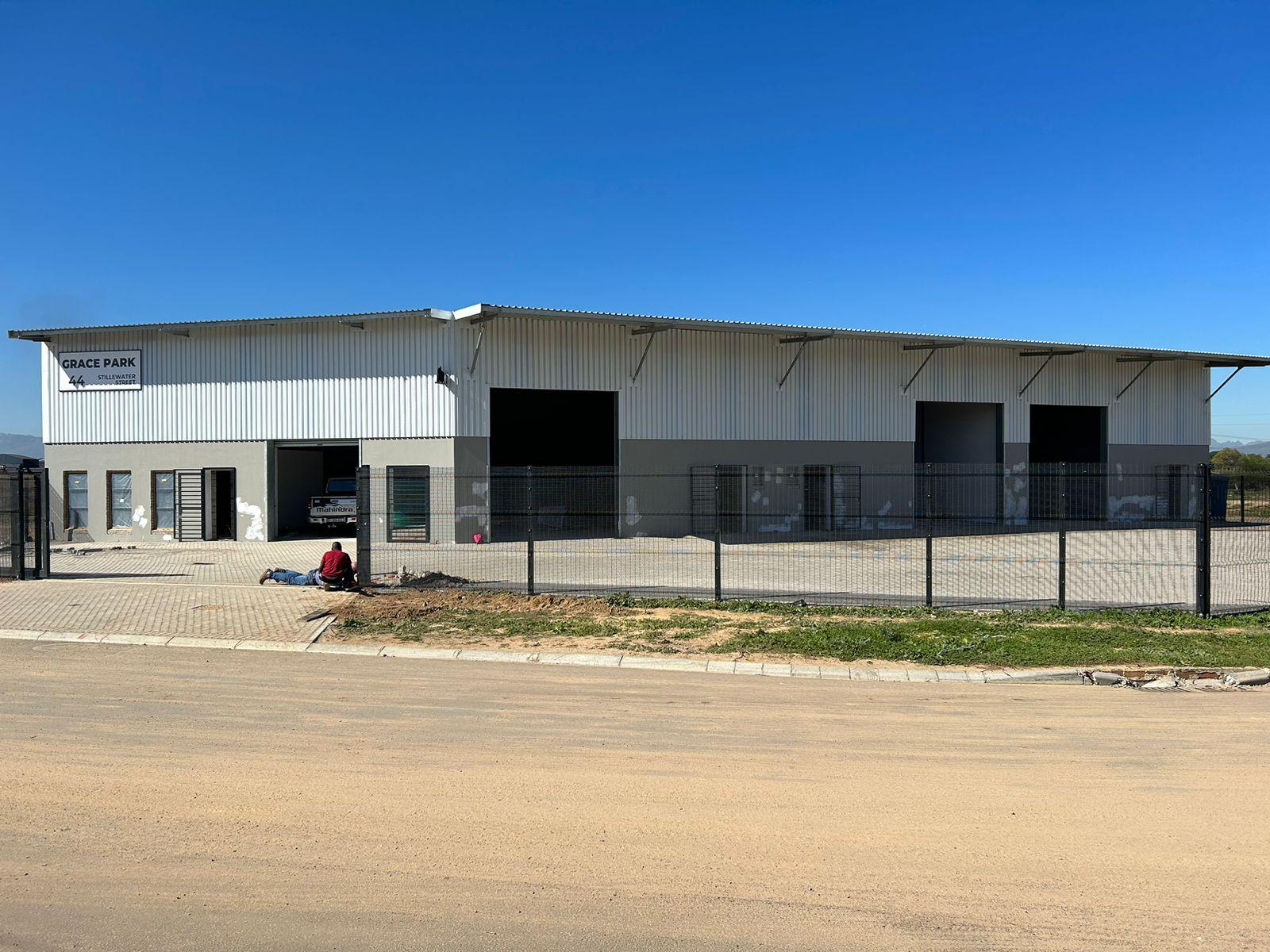 • Description: Warehouse To Rent in Grace Park, Stillewater Street, Fisantekraal. This newly developed open plan warehouse has good height, solid 50sqm mezzanine floor, 1 x large roller shutter door, 3 x parking bays, kitchenette and toilet.This newly developed warehouse is situated in the sought after Stillewater Street making it easily accessible via Wellington Road, Okavango Road, Old Paarl Road and the N1 Highway.